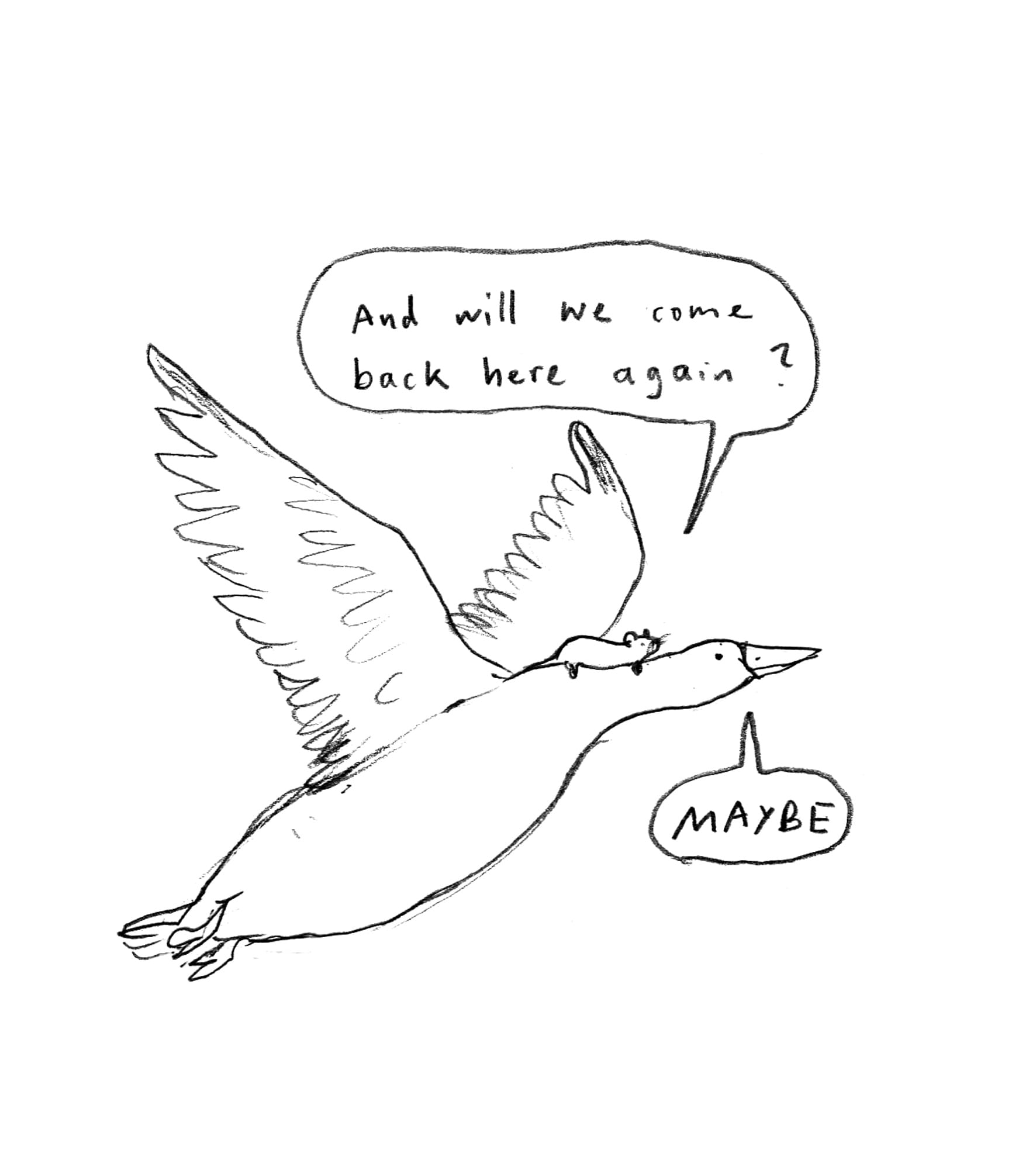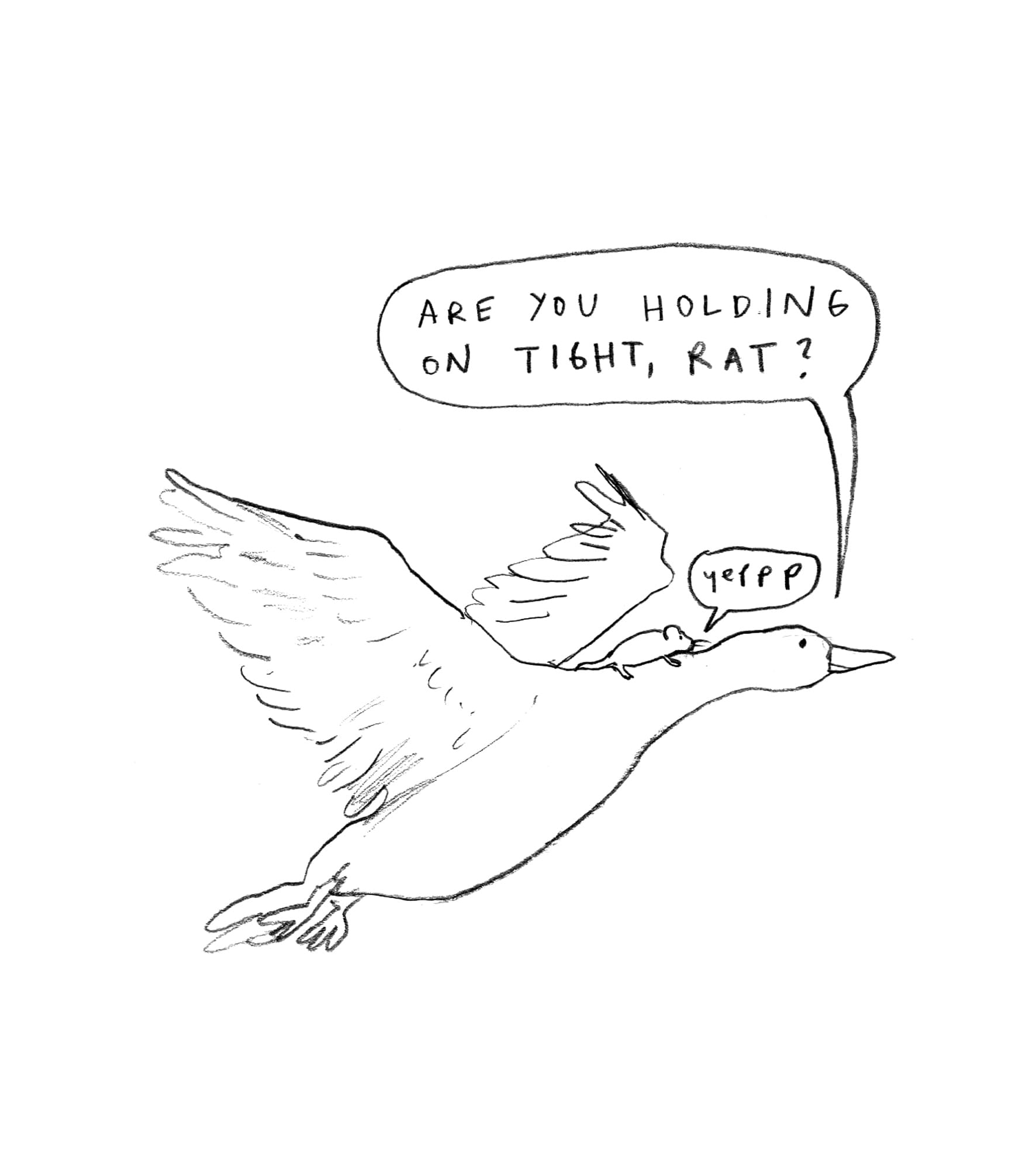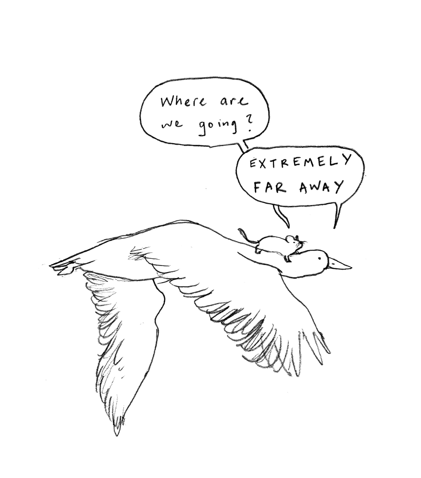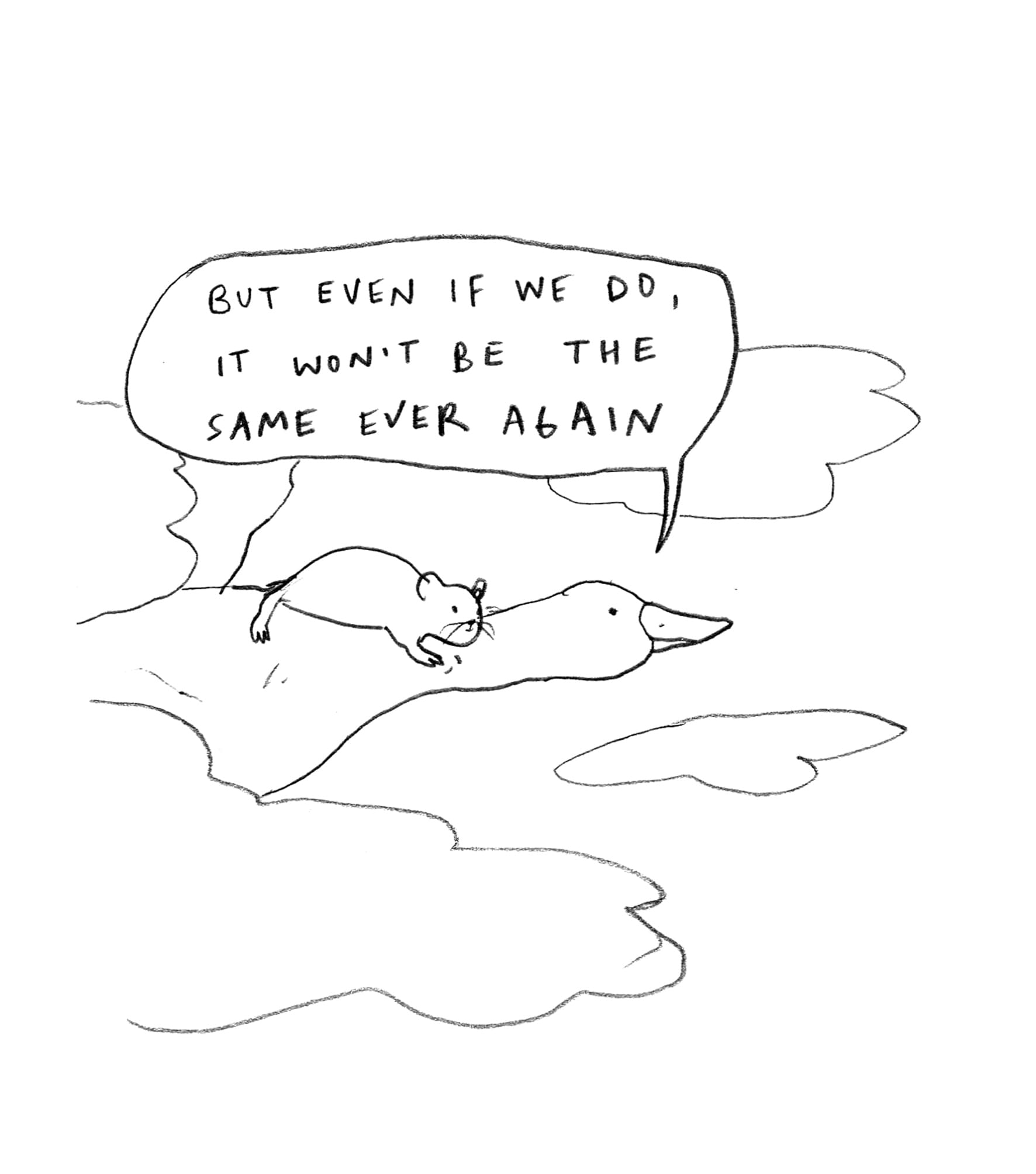 I've channelled these feelings into some more Rat & Goose content. When I shared my sketches of them a few weeks ago, I suspected it would be a one-off comic. However, I received several lovely comments on Instagram and even an email in which someone explained they were so touched by that little comic they were considering getting a Rat and Goose tattoo (!). With such a loud and clear public outcry, I simply had to continue their story.