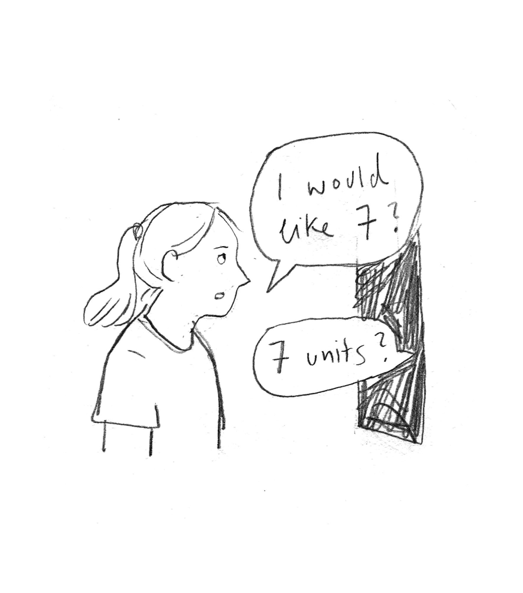 I vow from now on to order everything in units only. "I'd like to order pizza, please, two units, one with four units of cheese, and one with as many units of mushrooms and olives as possible..."