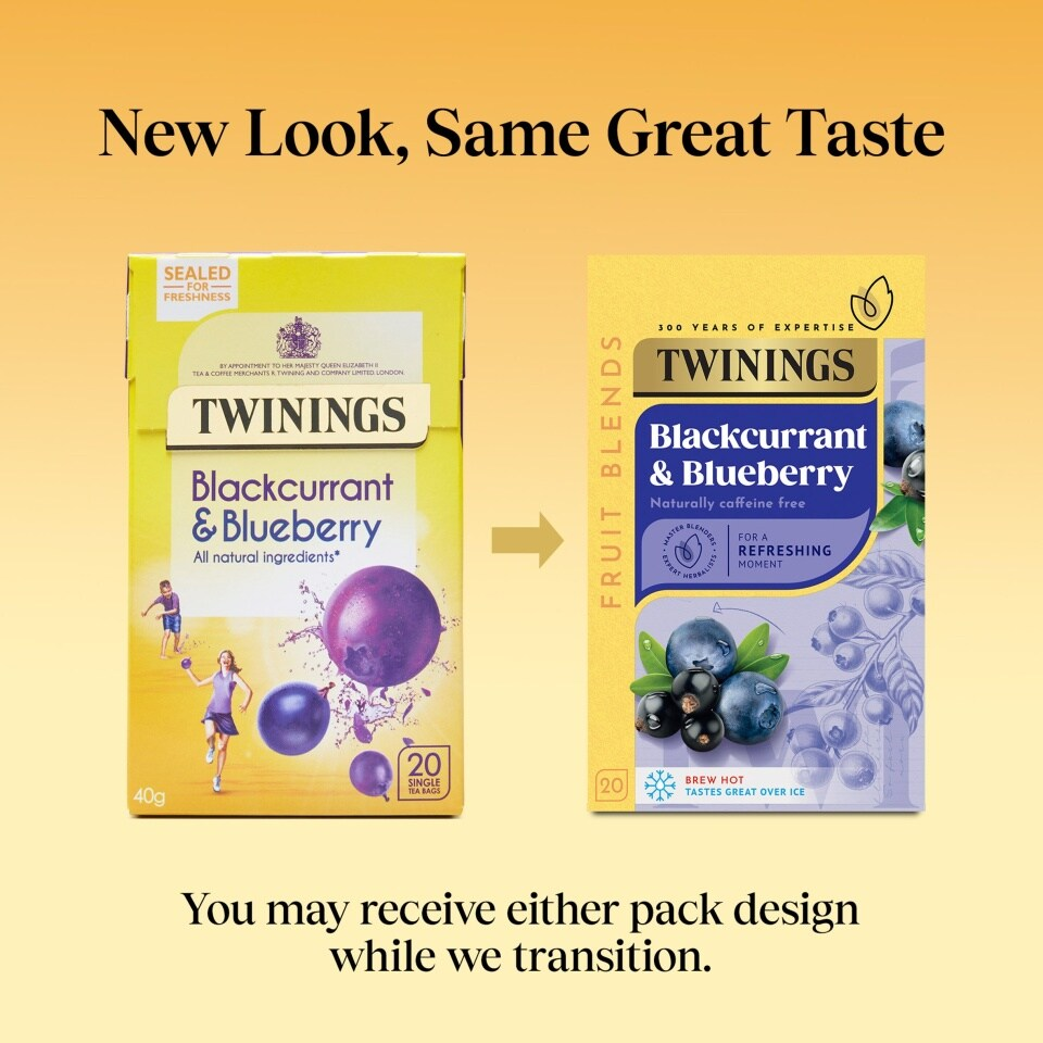 This piqued my curiosity and, upon investigating the other flavours of Twinings tea, I discovered that this redesign has affected their full range of herbal teas. The design brief seems to have been to do away with abstract (often, may I say, unhinged) representations of the flavour to a straight-forward illustration of the ingredients. But this reduction in complexity has, in my opinion, also reduced the appeal. Take, for example, Blackcurrant & Blueberry:
