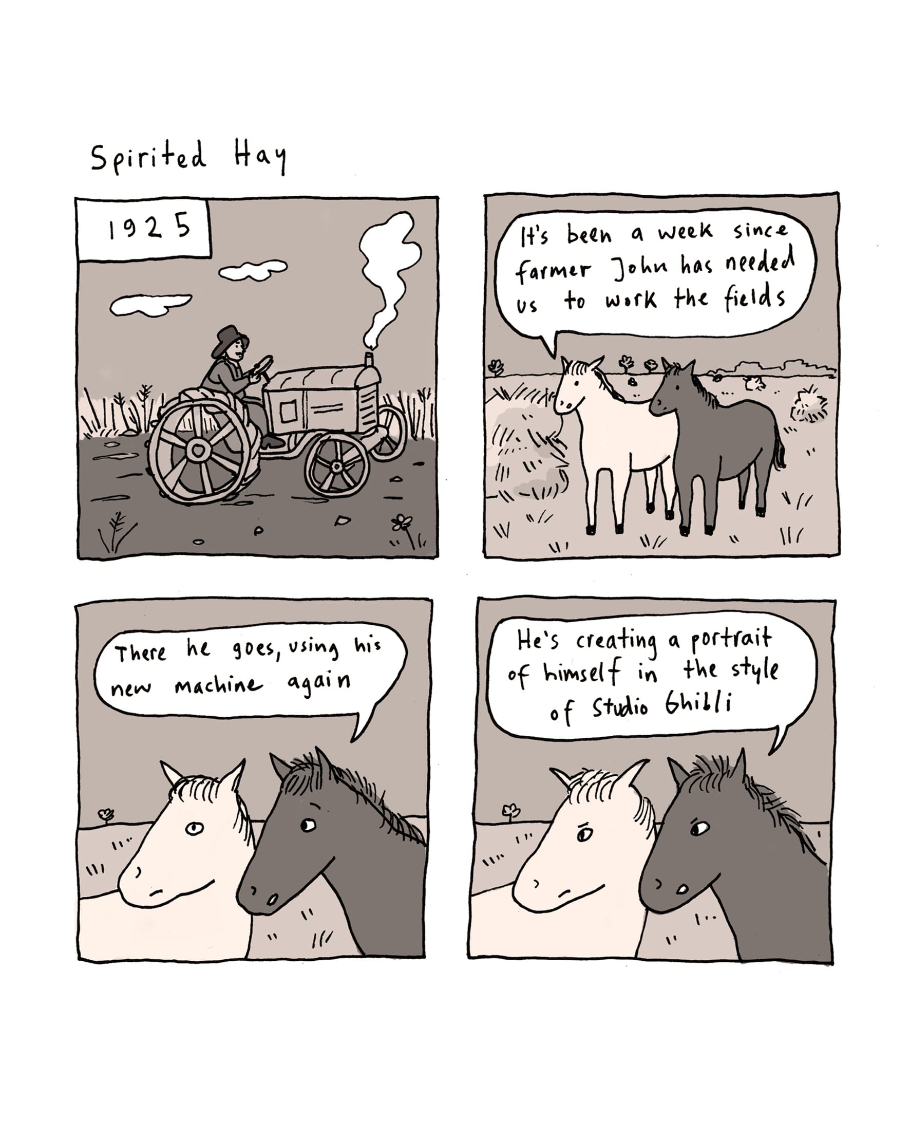 But I actually have been finding comfort in reading/thinking about the past, rather than the present or the future. I started thinking about the industrial revolution and how humans have responded to new technology in the past. Maybe some comfort or guidance can be found when looking at how we've dealt with change in the past, I thought, and suddenly it was midnight and I was reading about the invention of tractors. Essentially, I'm trying to relate to people in history to make my own experience feel less scary.